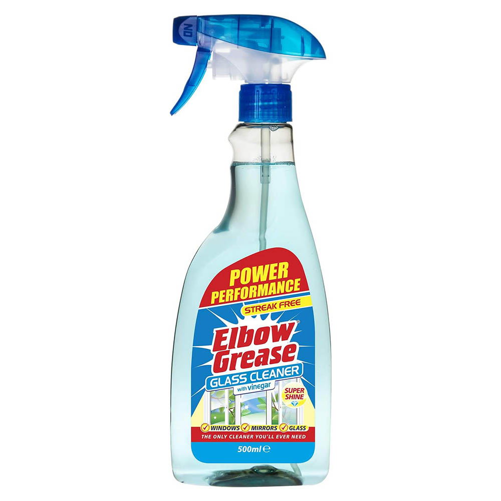 Remove grease, grime and unwanted fingerprint from your windows and mirrors with this Glass Cleaner with Vinegar, the miracle product from Elbow Grease. This unique formula with added vinegar leaves your windows, mirrors and glass surface shiny and clean. Perfect for use on various glass surfaces, from mirrors, glasses and windows to glass tables. 500ml spray bottle.