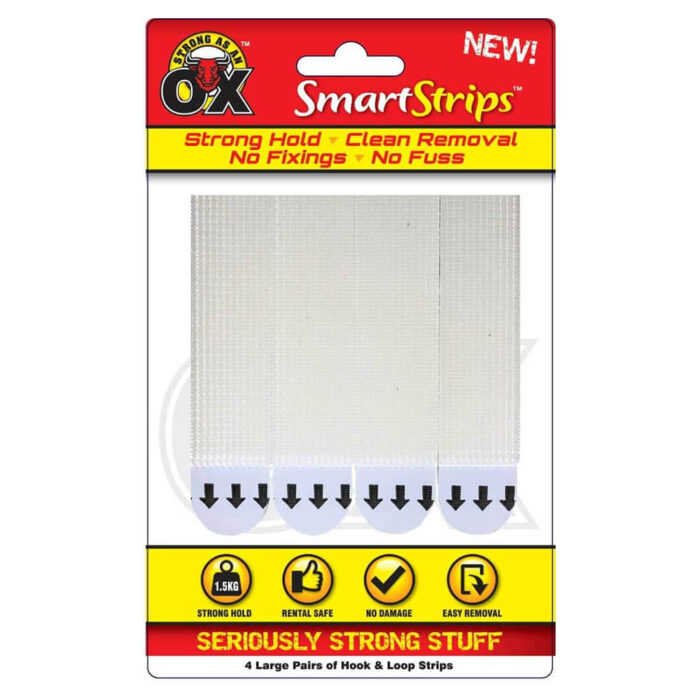 These fantastic Strong as an Ox Smart Strips are ideal for hanging and sticking items such as posters and pictures to your wall. With No Damage left behind and a strong hold these strips are ideal for any room and ensure a hastle free hanging with a no fuss removal.