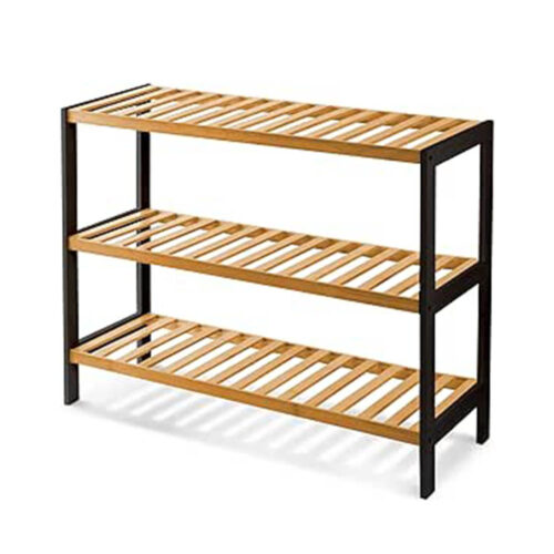 Bamboo Shoe Rack That Holds Up to 12 Pairs Of Shoes. Strong Shelf Organiser For Households.